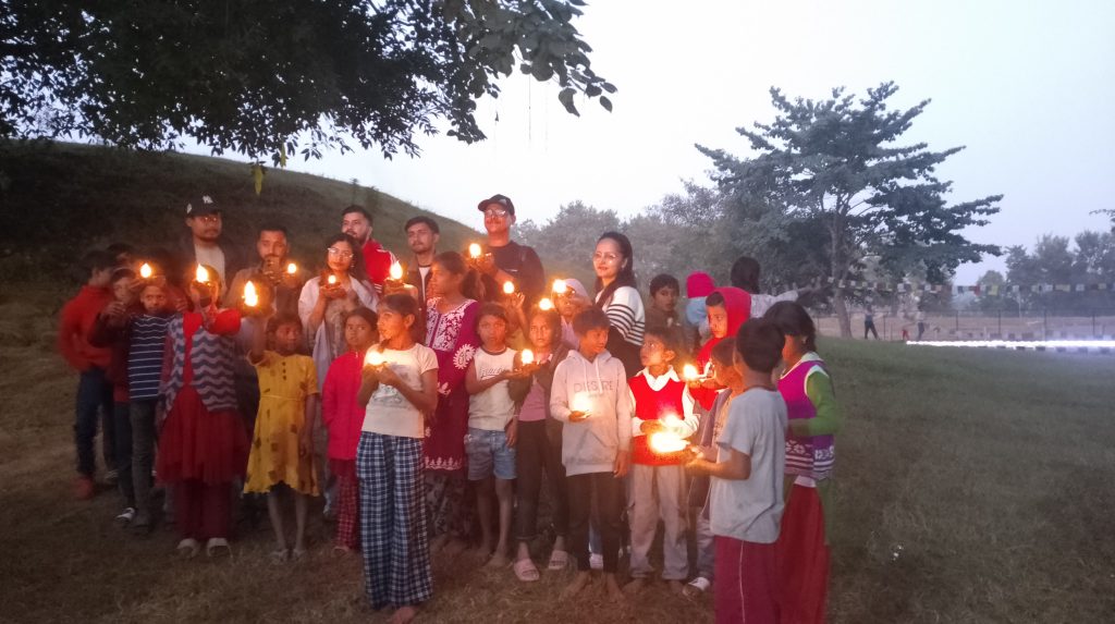 बाैद्ध भिच्छु,विदेशी पर्टक सहित बालबालिकाहरूले दिप प्रज्वलन गरे।