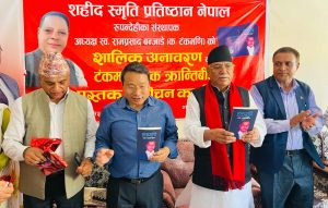 टङ्कमणि :एक क्रान्तिविज नामक पुस्तक विमोचन गर्दै प्रचण्ड